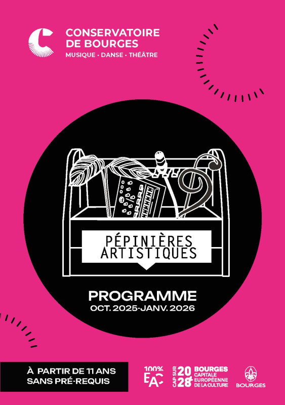 Découvrez le programme des Pépinières artistiques, ateliers de découverte et d’expérimentation proposés par le Conservatoire de Bourges.